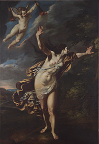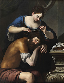 Conversione della Maddalena (1613-1615) fu commissionata ad Artemisia da Cosimo II e destinata alle stanze della consorte del granduca, Maria Maddalena d’Austria, omonima e grande devota della santa. In questa versione di Artemisia, la santa pentita – una fanciulla moderna agghindata con una veste di un brillante colore oro – non è colta nel momento della contrizione per i peccati commessi, ma nell’attimo esatto in cui, prendendo improvvisa coscienza della sua condizione immorale, prova un tale disgusto da allontanare da sé lo specchio, simbolo della vanità che fino a quel momento ha caratterizzato la sua esistenza. Nel pennello di Artemisia, Maddalena diventa un’eroina femminile, capace di ribellarsi a una condizione che non sente più sua e che non vuole più le appartenga, per cercare una nuova dimensione salvifica.