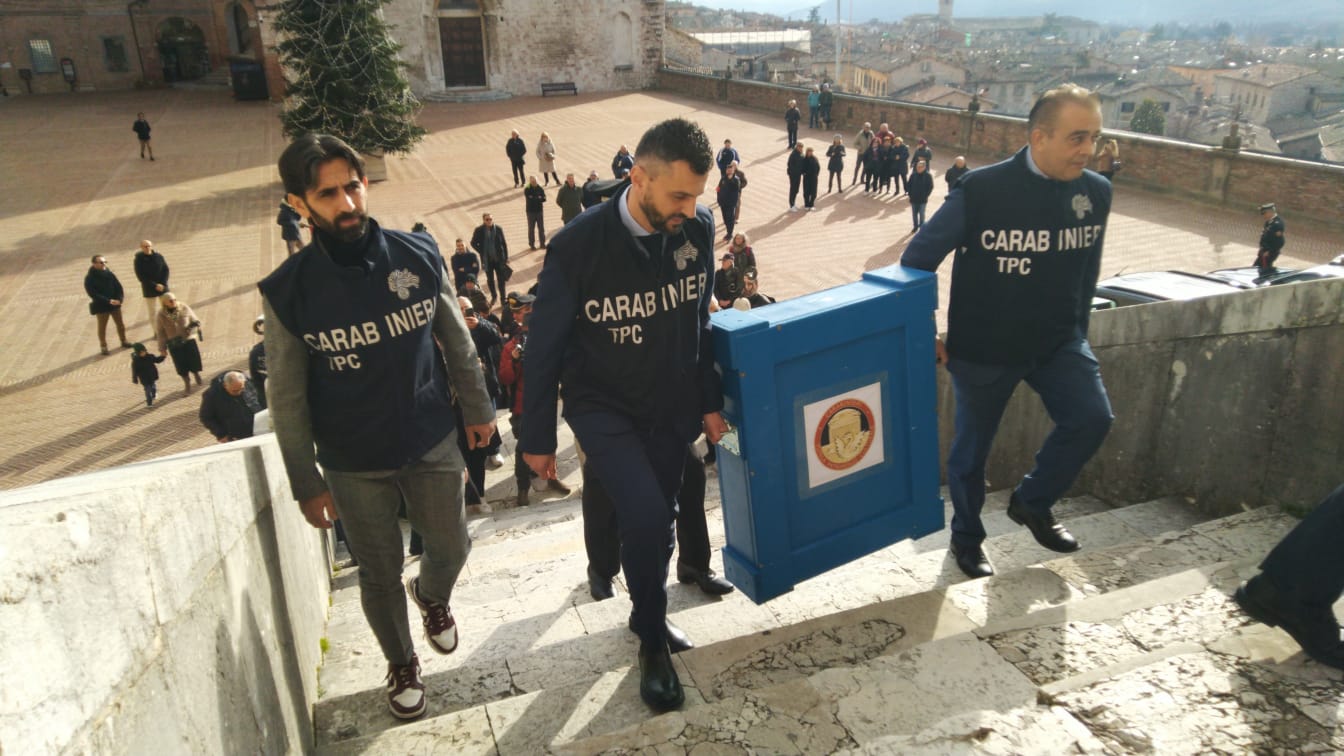 L’effige fotografica dell’opera asportata era stata inserita all’epoca del furto nella “Banca Dati dei beni culturali illecitamente sottratti” gestita dal Comando TPC e nel Bollettino delle ricerche delle opere d’arte trafugate n. 9 anno 1982, e, proprio dai preliminari accertamenti condotti, i Carabinieri TPC potevano rilevare che la foto del bene culturale presentava notevoli analogie con quella trafugata nel 1979 dalla Pinacoteca di Gubbio.