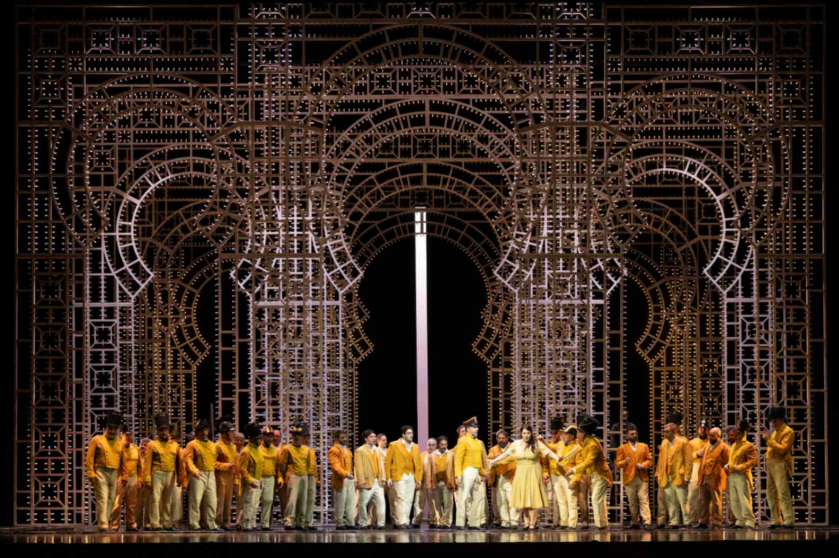 Impegnate tutte le compagini artistiche del Massimo partenopeo: insieme all’Orchestra, il Coro preparato da Fabrizio Cassi, il Balletto diretto da Clotilde Vayer e il Coro di Voci Bianche affidato a Stefania Rinaldi.