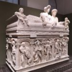 Seguono altre stratigrafie pavimentarie ma, di particolare prestigio, sembra essere un lacerto musivo con iscrizione databile agli anni dell’impero di Traiano (98-117 d.C.) che risulta frammentario a causa del reimpiego delle tessere in successive trasformazioni. L’iscrizione ricorda che la pavimentazione fu a carico di tre personaggi appartenenti ad un collegium con sede pubblica in quella parte della domus.
