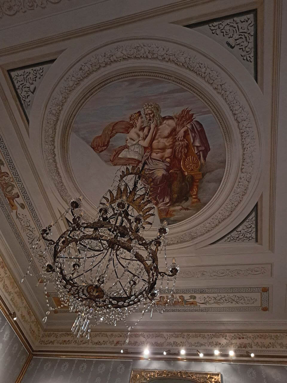 Si può facilmente immaginare la sorpresa, a Palazzo Ducale, quando ci si è trovati di fronte a queste decorazioni neoclassiche, preservate in particolare nella Stufetta. In questa stanza è stata anche ritrovata una porta di passaggio verso la Camera di Giove, precedentemente coperta dalle stoffe. Il magnifico soffitto proviene invece da Palazzo San Sebastiano: fu fatto spostare da Vincenzo I Gonzaga tra la fine del Cinquecento e gli inizi del Seicento.