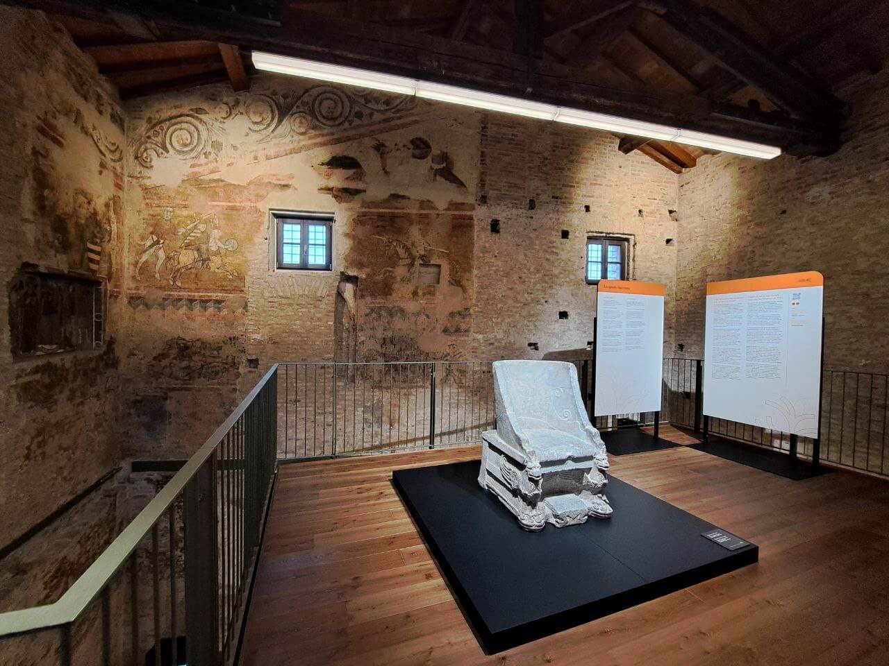 Qualcuno potrebbe notare come si sarebbe potuto dare maggior spazio negli allestimenti al latino, ad esempio sui pannelli. È una domanda che ci siamo posti anche noi, e l’abbiamo girata proprio alla direttrice dei Musei Civici, Veronica Ghizzi, che ci ha spiegato come si sia trattato di una scelta di maggior condivisione e inclusione, per permettere a tutti di fruire immediatamente dei versi di Virgilio: il latino non è però certo assente, e lo ritroviamo non solo nelle audioguide, ma pure nello spazio sonoro del Museo. Ad ogni modo, i testi di Virgilio sono facilmente reperibili online, e i riferimenti delle citazioni sui pannelli permettono di ritrovarli rapidamente, per cui a parere di chi scrive si tratta di un falso problema.