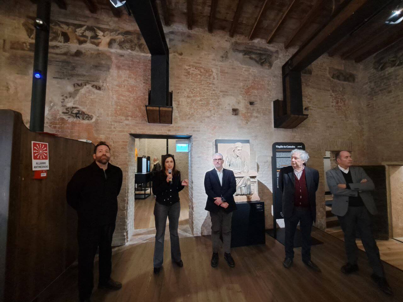 Questa però è solo una faccia della medaglia: l’altra faccia ci racconta di un edificio pesantemente colpito dal terremoto del 2012, e che, come ha spiegato il sindaco Palazzi – grazie a un piano ventennale posto in essere nel 2016, anno di Mantova come capitale italiana della cultura – ha permesso di attuarne lo straordinario recupero e quindi la creazione del Museo. I presenti hanno quindi ricordato l’architetto Italo Rota, che aveva lavorato per recuperarlo e collegarlo a Palazzo della Ragione.